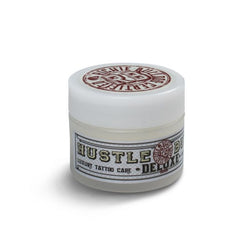 Hustle Butter Deluxe è un sostituto vegano e naturale al 100% di tutti i prodotti petroliferi per la preparazione pre-pelle, come lubrificante per tatuaggi durante il processo di tatuaggio e per la cura post-tatuaggio.